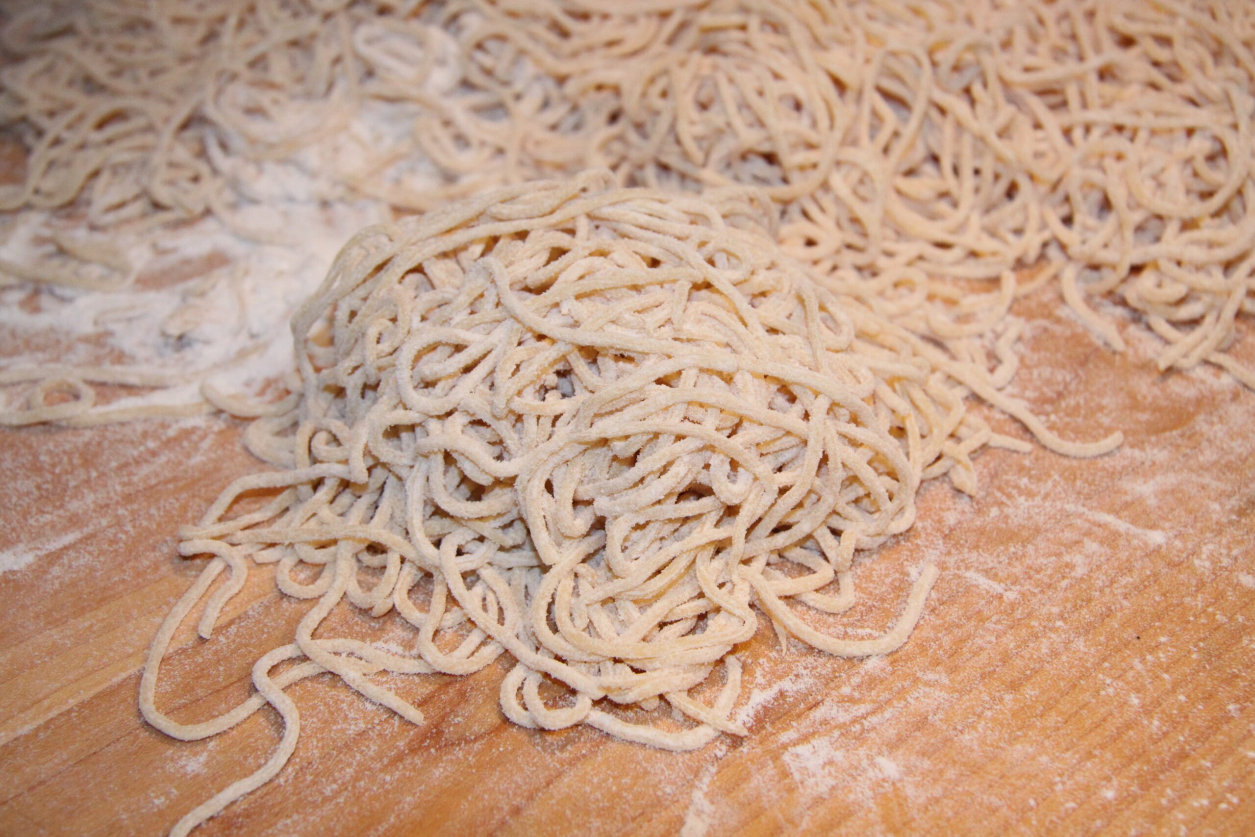 - Cut the sheets of pasta to desired length and pass them thru the spaghetti cutter.