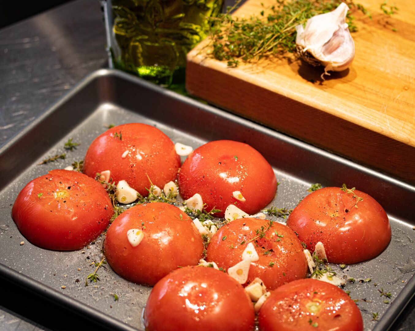 Cookie sheet – to roast the tomatoes, garlic and thyme