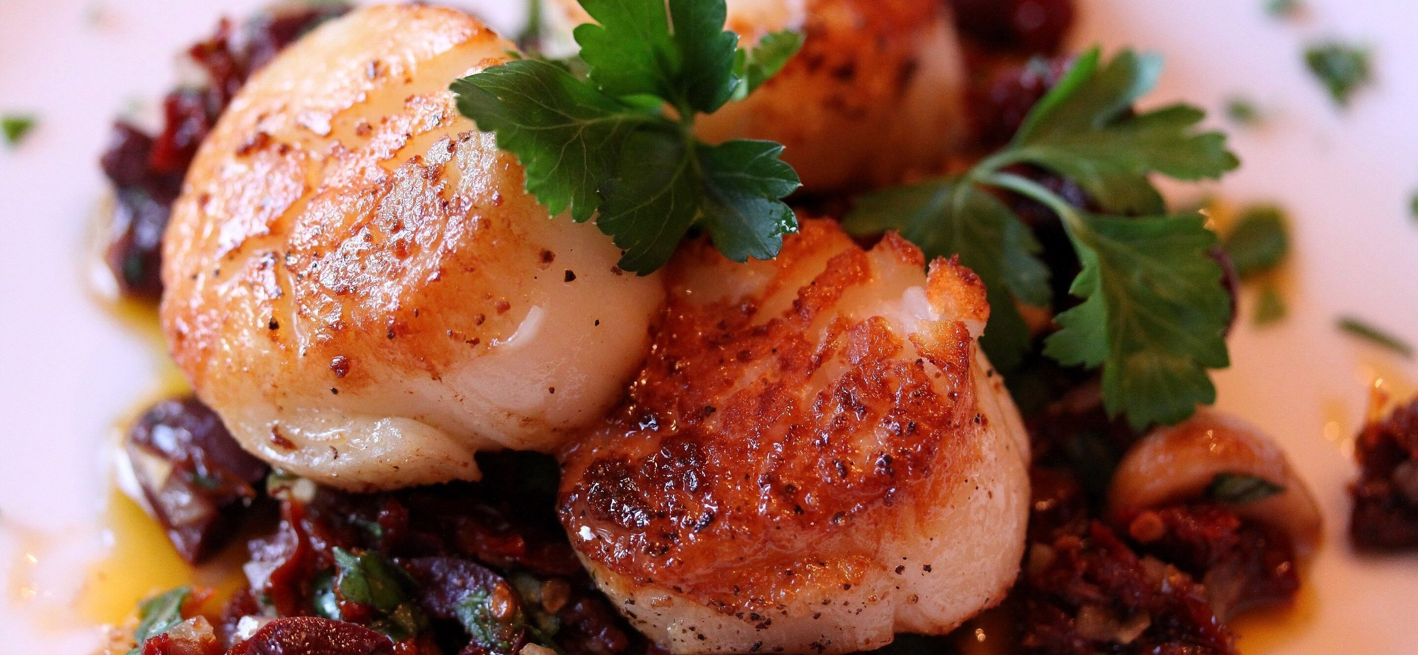 Seared Sea Scallops with Garlic, Sun-Dried Tomatoes, and Olive Compote