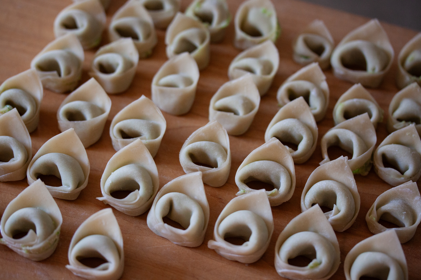 While finishing up some leftover peas and wonton wrappers, as well as combining part of the original recipe that my family passed down, I present you my version of homemade tortellini pasta.
